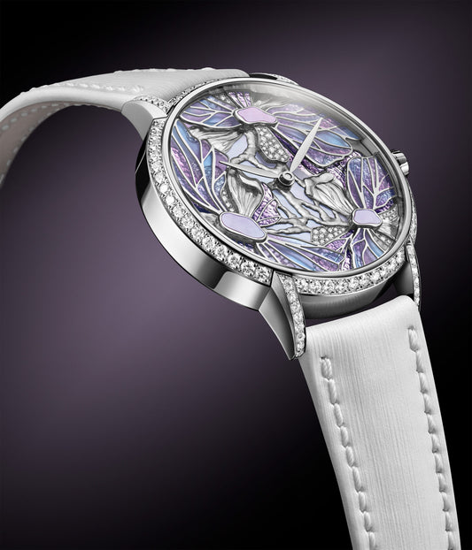 Chaque montre, unique, est une œuvre d’art où plus de 200 heures sont consacrées à la création de cadrans d’exception et 100 heures à la gravure des mouvements.