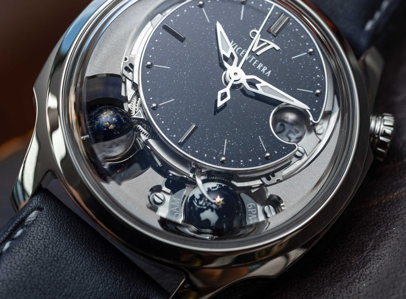 Vincent Plomb, fondateur de Vicenterra, a suivi un parcours atypique, passant du génie civil à la micromécanique avant de plonger dans l’horlogerie. Porté par une passion pour les complications, il conçoit dès 2008 des prototypes 3D innovants, révélant les mouvements célestes. En 2010, la complication « Phase de Terre » donne naissance à sa marque.