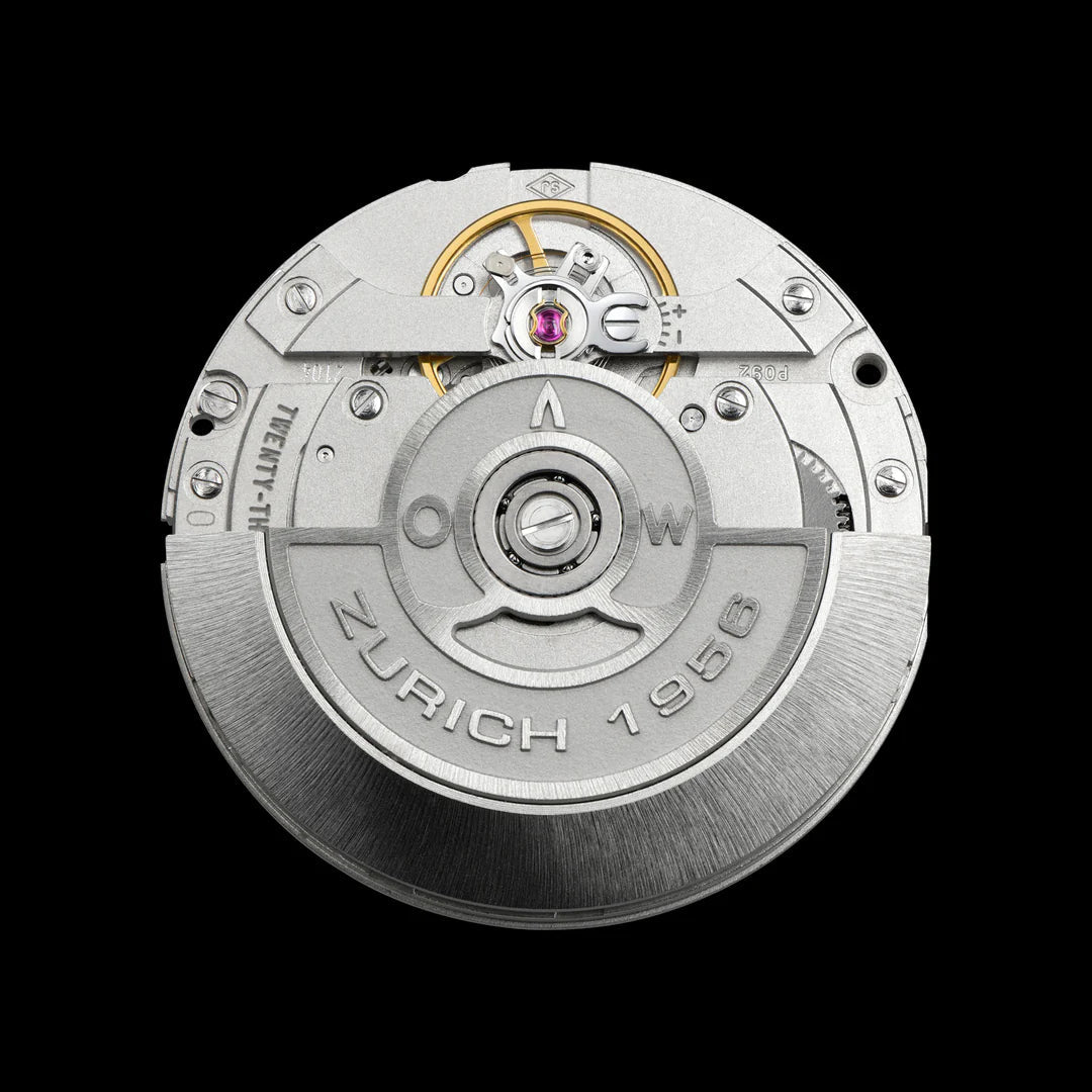 Mouvement Automatique, Soprod Newton Precision P092 développé sur mesure ; affichage de la date avec changement semi-instantané et correction rapide par la couronne ; stop seconde ; fréquence de 4 Hz (28’800 alternances/heure) ; 23 rubis ; réserve de marche de 44 heures. Mouvement testé de manière indépendante au Laboratoire Dubois à La Chaux-de-Fonds et certifié Chronofiable®. Certification COSC disponible en option.