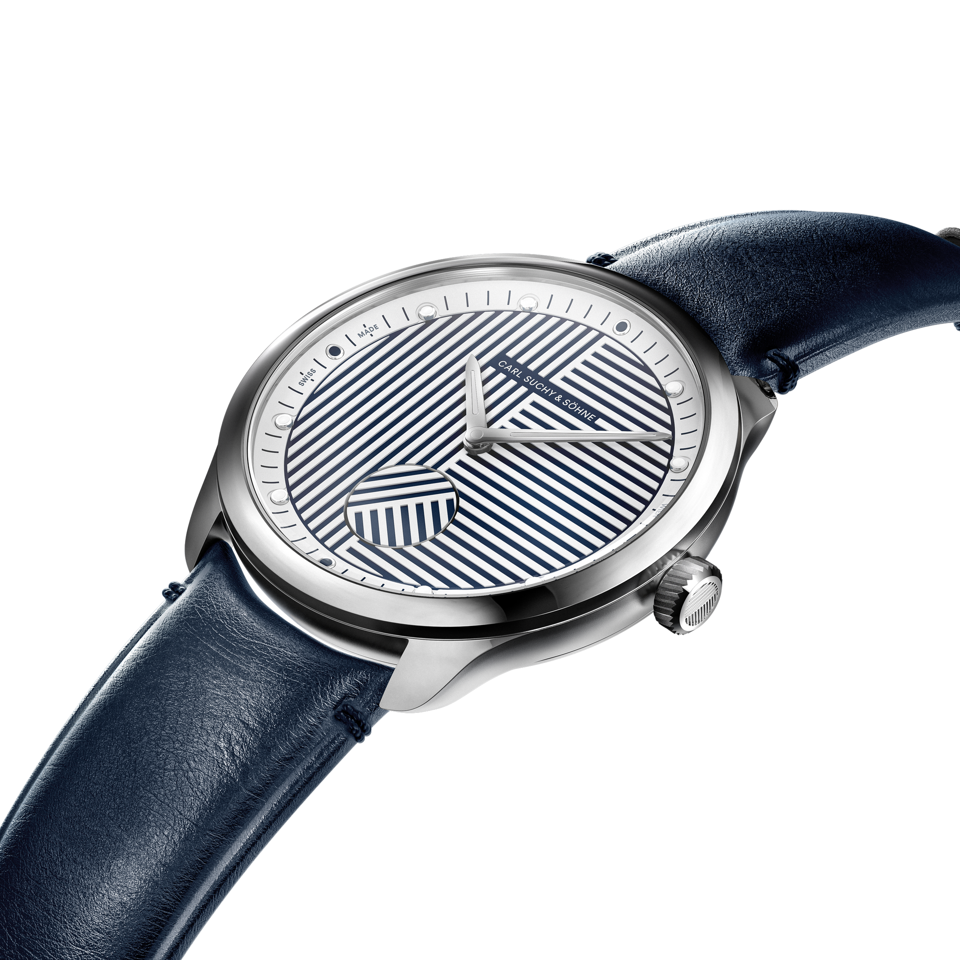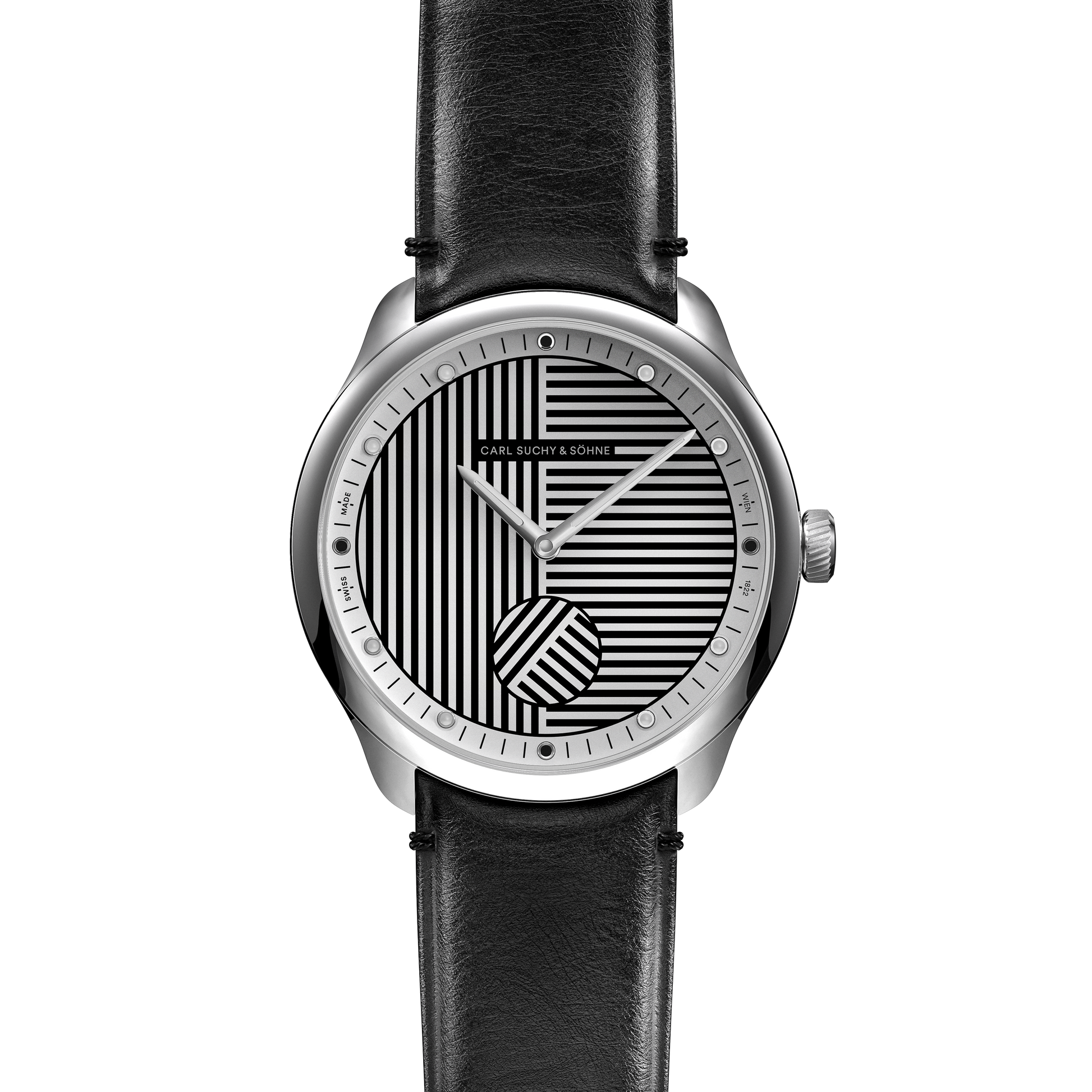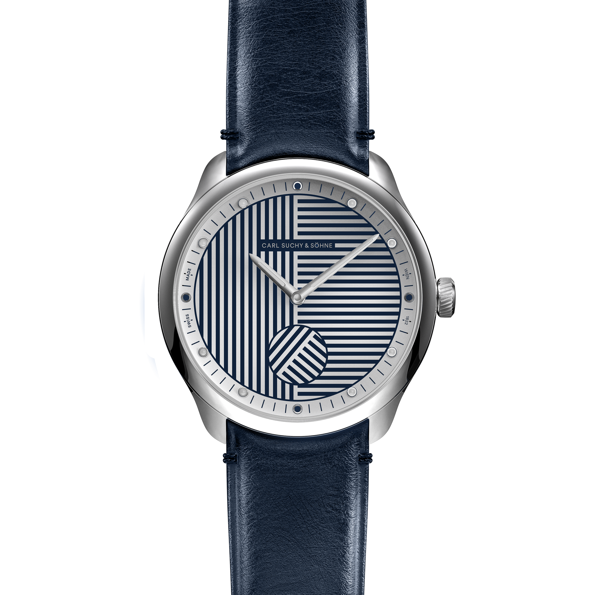 Swiss Made Fabriquée en Suisse, présentée dans une pochette de voyage en cuir intégrée à un écrin en velours fait main à Vienne, au design exclusif Carl Suchy & Söhne